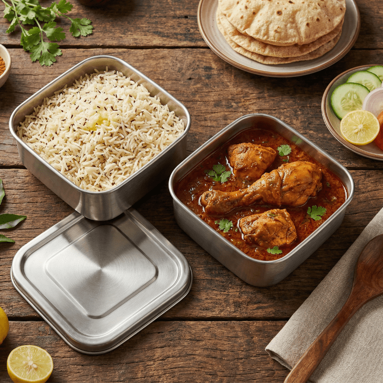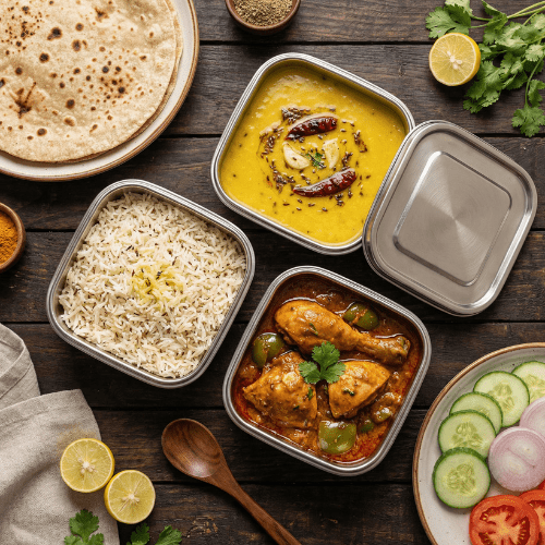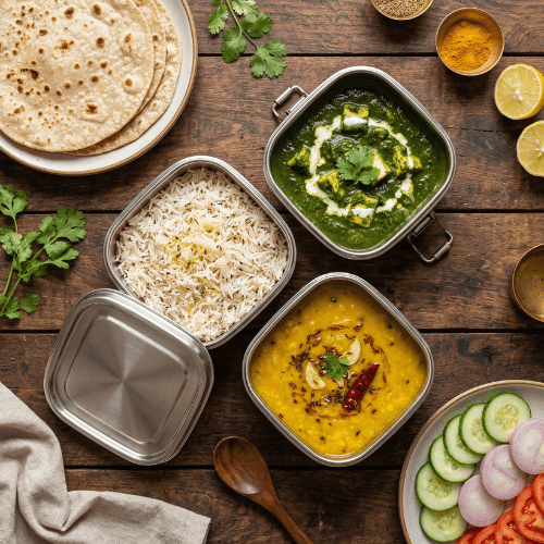 Eco-friendly, hygienic steel tiffins for safe meal delivery.